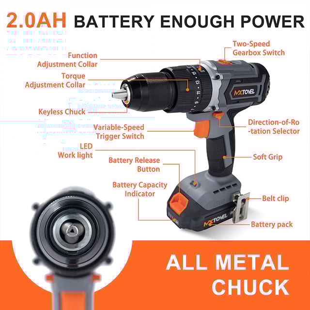 Kabelloser Betrieb: Da die Bohrmaschine kabellos ist, bietet sie eine größere Mobilität und Flexibilität, sodass Benutzer an verschiedenen Orten arbeiten können, ohne durch Steckdosen eingeschränkt zu sein.